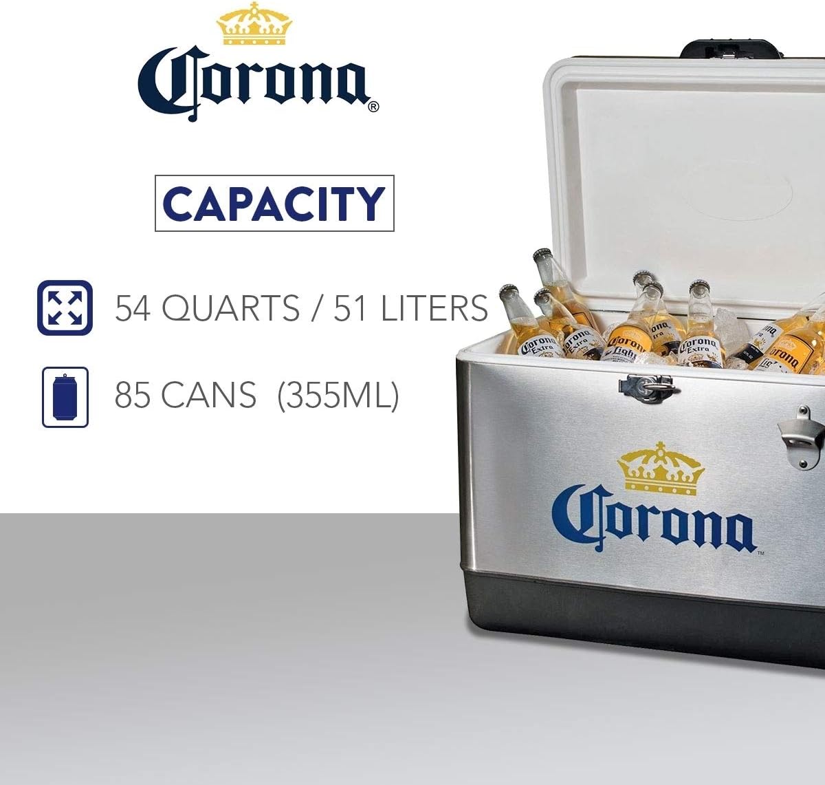 El enfriador para cerveza CORIC 54 de Corona es ideal para viajes muy largos y de varias personas pues tiene una capacidad de almacenamiento de hasta 85 latas o botellas . tus bebidas se mantendrán siempre frías , sin importar que estés en un lugar con demasiado calor, gracias a la alta tecnología del enfriador para cerveza CORIC 54 de corona .